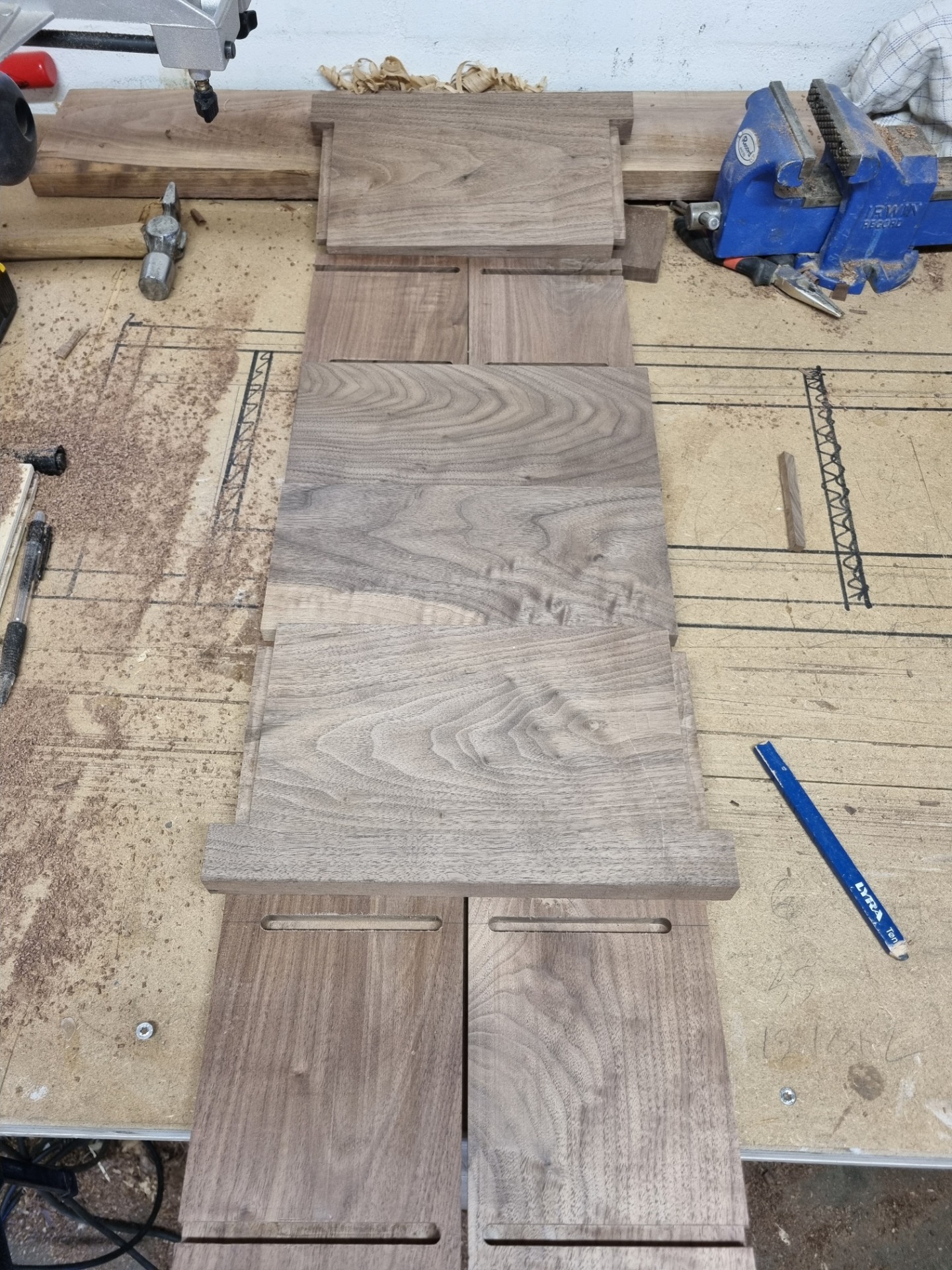 Valnød er et materiale som har en mørkere og varmere glød en mange andre træsorter, dette i kontrast med den lysere eg fremviser strukturen i træet, hvor man kan se de flotte år tegninger som der løber igennem træet.